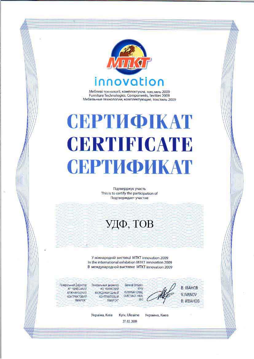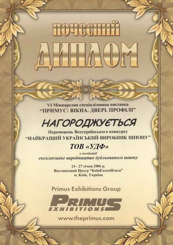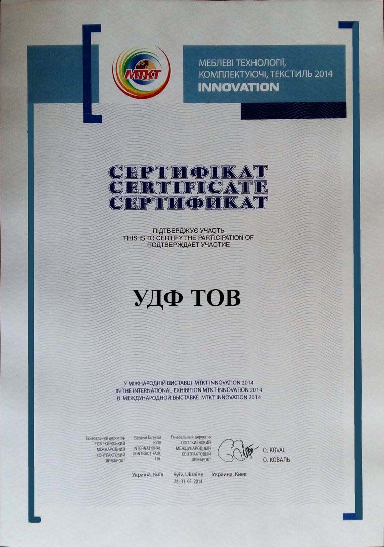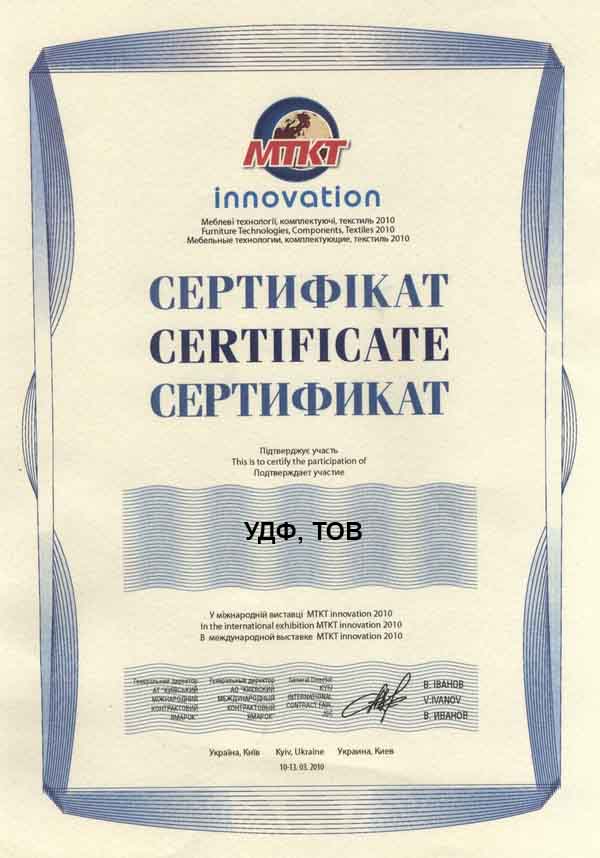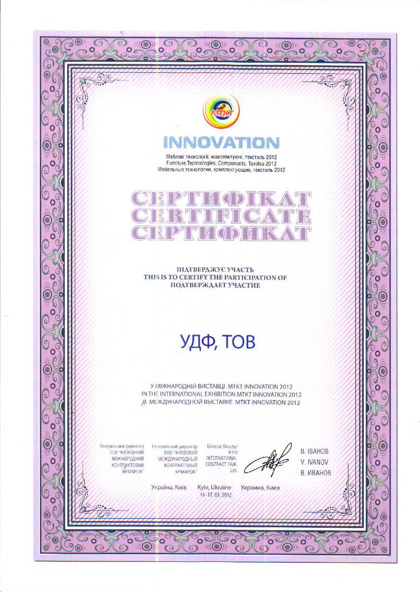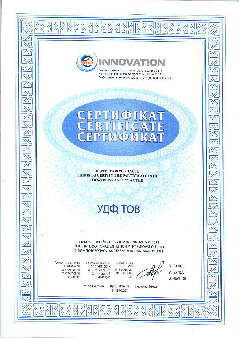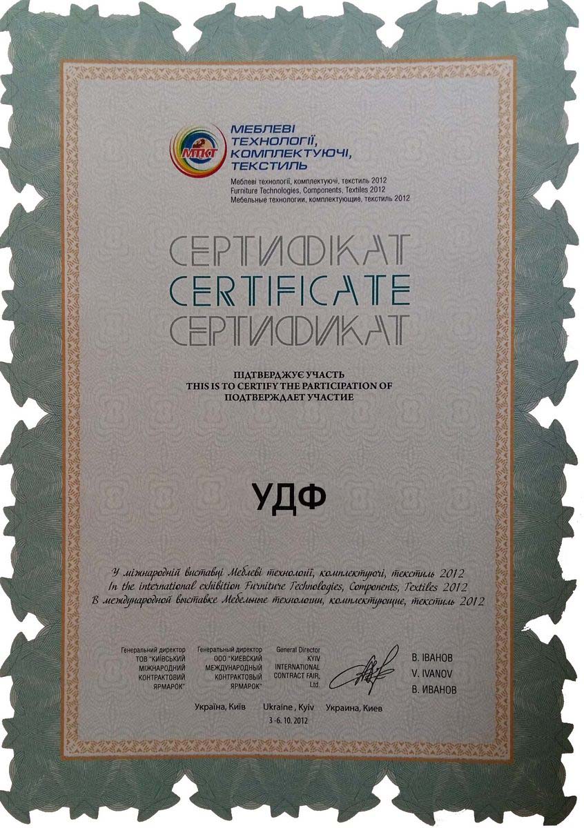 Sp. z oo UDF była wielokrotnie nagradzana za udział w wystawach z wysokiej jakości produktami fornirowanymi - dyplomami wystawienniczymi i certyfikatami za najlepszą jakość fornirowanej płyty MDF, płyty wiórowej, sklejki, płyty stolarskiej oraz zdublowanej krawędzi i forniru w rolkach.